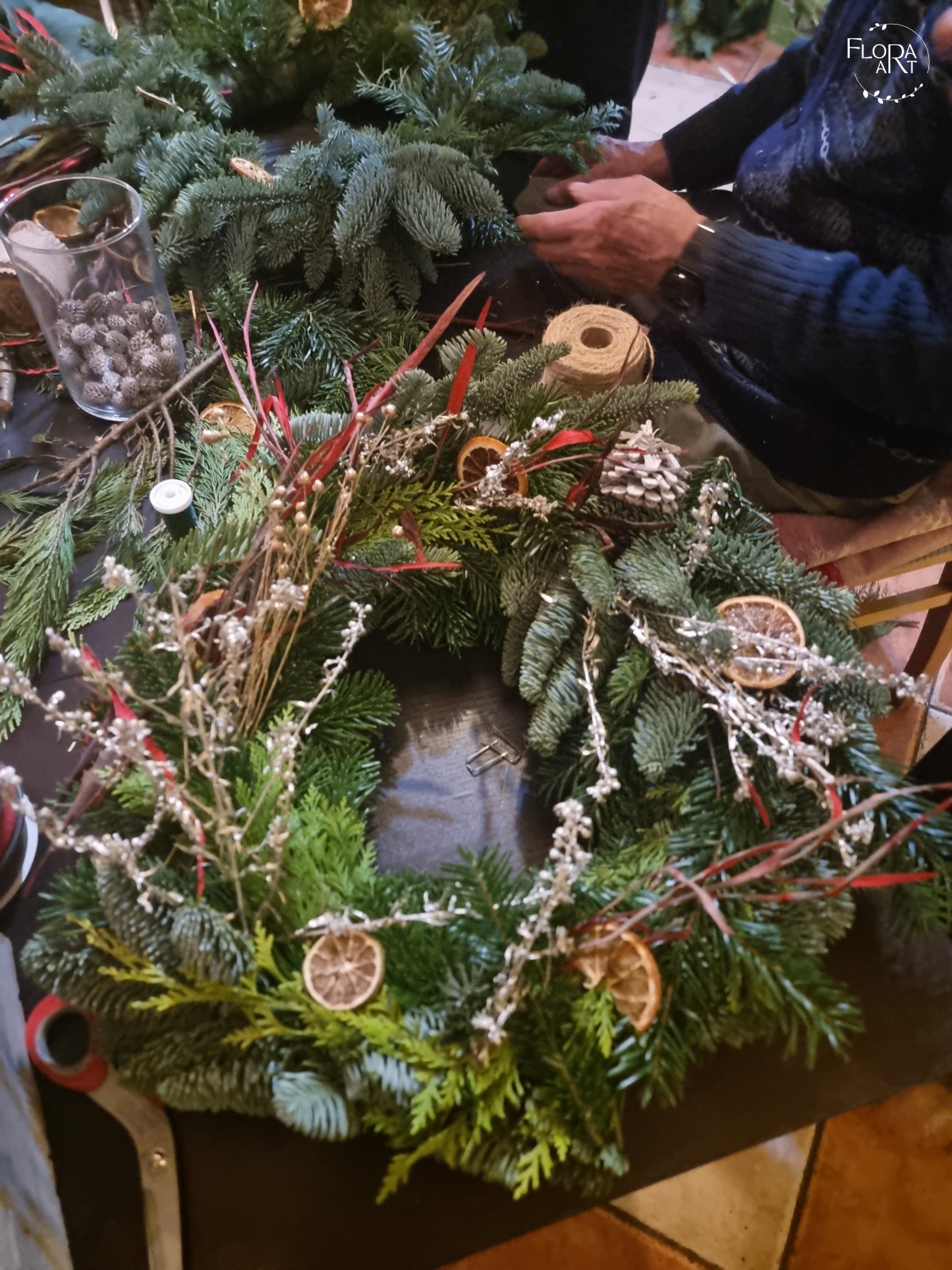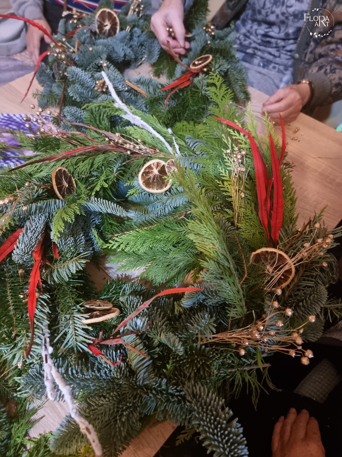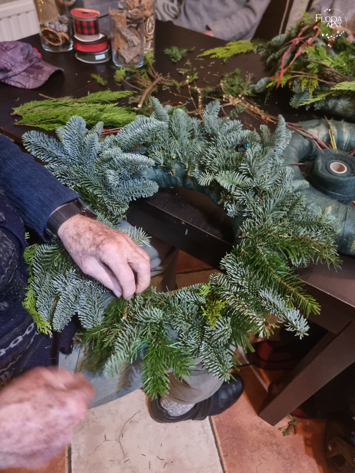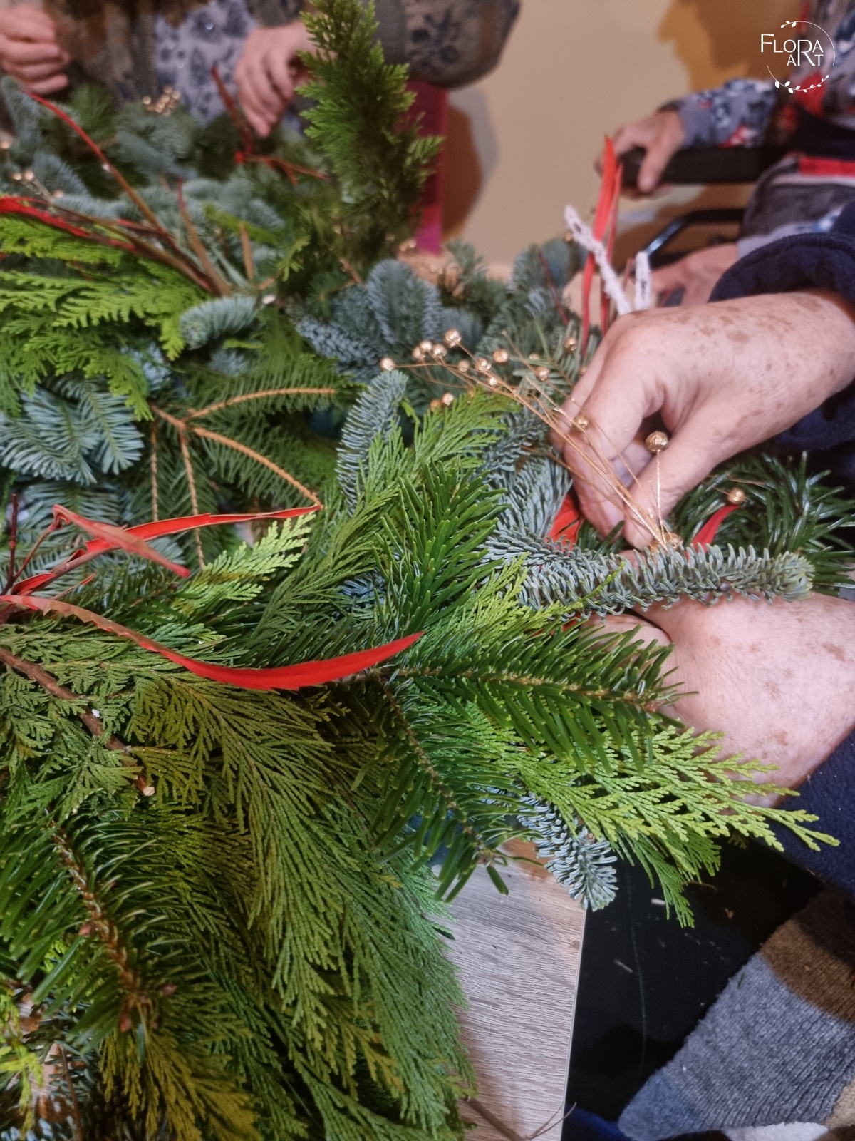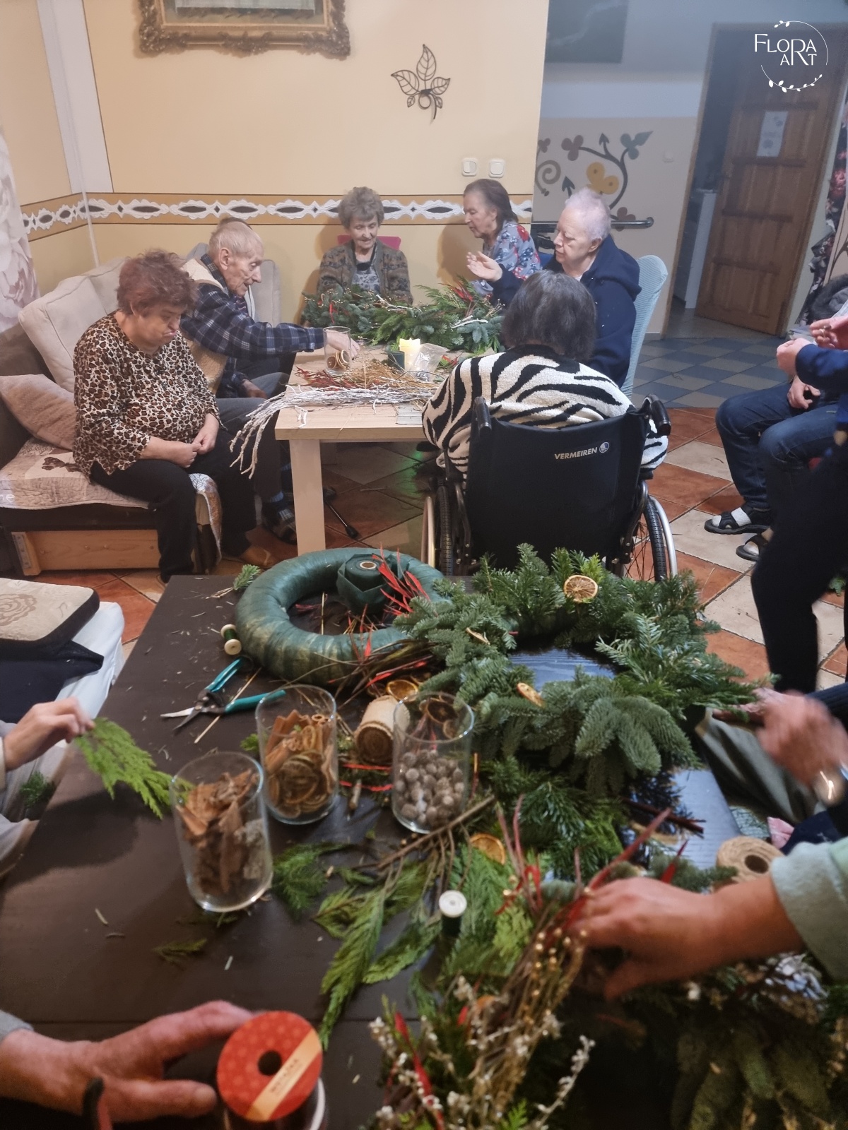 Warsztaty z tworzenia wianków na drzwi dla mieszkańców Domu Seniora w Górze.